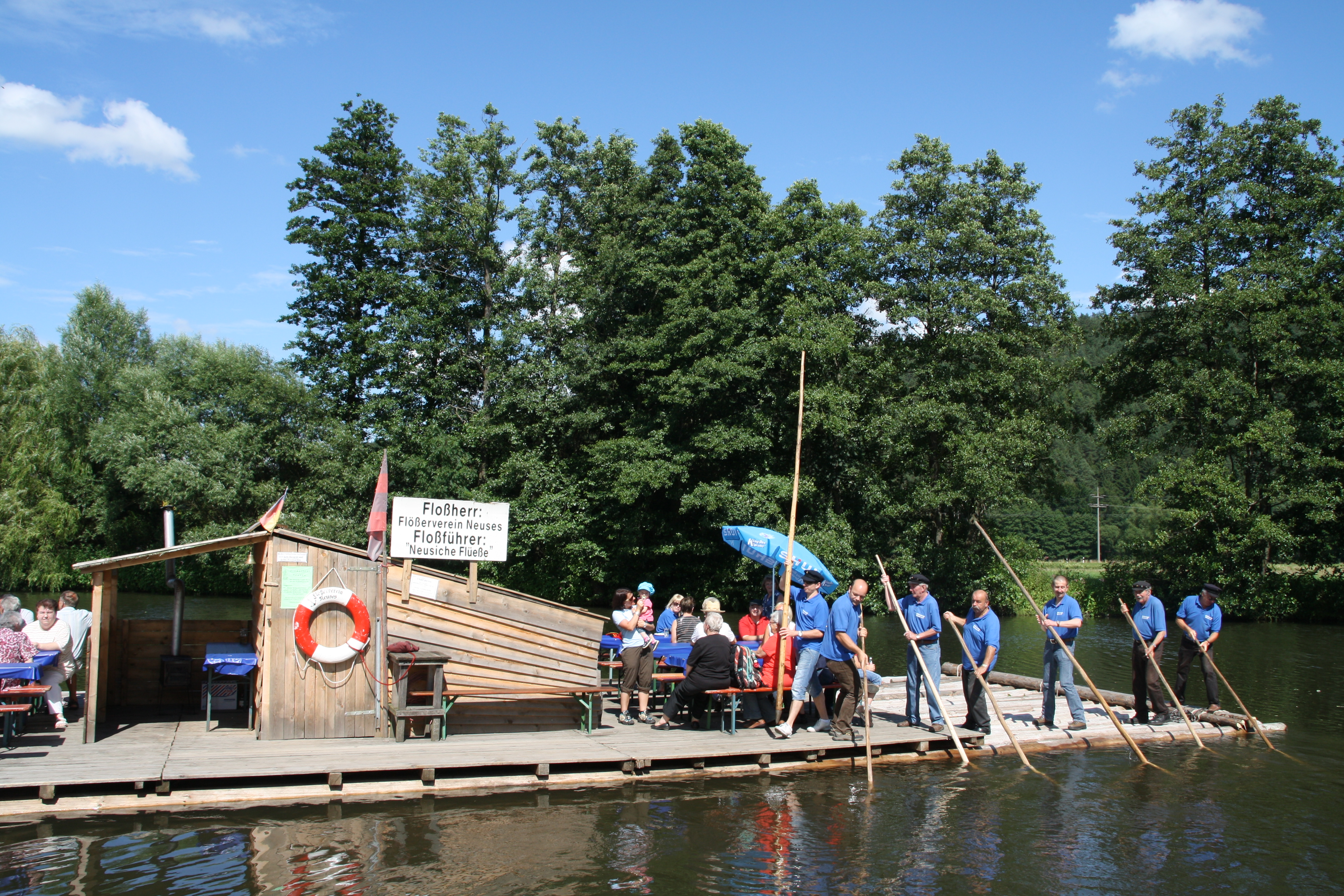 Eine Floßfahrt zwischen Kronach und Neuses eignet sich für die ganze Familie, für Senioren und Rollstuhlfahrer.